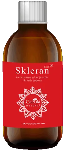 Skleran Plus® (50 ml) štiti od oštećenja i pomaže u očuvanju zdravlja ovog sistema zahvaljujući prisustvu antioksidanasa. Svojim sastavom omogućava topljenje naslaga sa zida krvnog suda, povećavajući njegovu prohodnost. Vrši nivelaciju masnoća u krvi i učestvuje u regulaciji krvnog pritiska. Omogućava maksimalnu ishranu zida krvnog suda na nivou čitavog tela, otklanjajući tegobe kod dijabeta, infarkta i šloga. Registrovan je u Ministarstvu zdravlja R. Srbije i na tržištu se nalazi od 2004. godine. Skleran Plus® se, kao dodatak ishrani, koristi uz postojeću terapiju. Preporučujemo da konsultujete svog lekara pre upotrebe ovog proizvoda. Preporučuje se kontinuirano uzimanje proizvoda u toku 6 meseci!